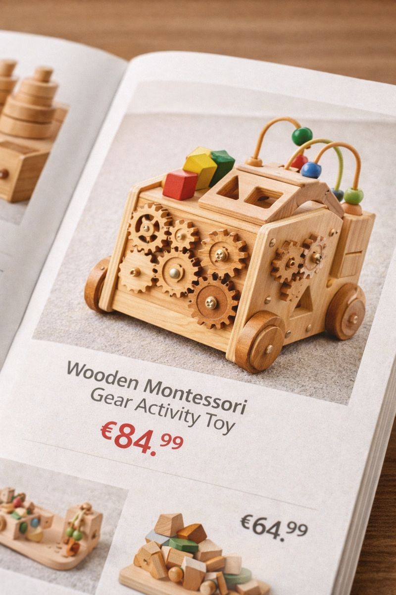 Y la verdad es que basta una búsqueda rápida en Google para que me dé la razón. Yo pongo en la barra de búsqueda: «juguetes Montessori» y la primera respuesta es «juguetes de madera» con el apellido de la pedagoga. Y el primer enlace es este de Lidl: un puto parking de coches que bajan solos. Al menos este caso es Montessori low-cost que te puedes sentir buen padre sin tener que empeñar un riñón. Hay otros juguetes de estos que dicen que fomenta la autonomía del niño, pero luego lo primero que necesitas es un adulto con destornillador. Destornillante.